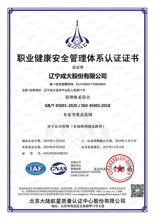 自2018年开展职业健康安全管理体系认证工作,至2024年5月再次认证工作圆满结束,成大股份领导高度重视该项工作,亲自部署、统筹推进,安全管理部具体牵头落实,股份公司各职能部门和在连各子公司积极配合,全力确保安全管理体系认证工作顺利开展。