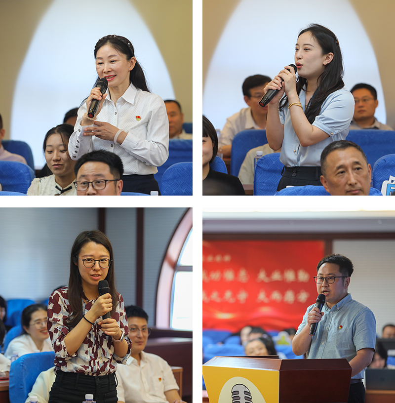 主题分享环节,还分别设置了现场互动,鼓励大家围绕主题或优秀征文中的“金句”踊跃“抢话筒”,谈体会、谈想法、谈建议,现场氛围热烈,大家各抒己见、情绪高涨,张善伟总裁、邱闯副书记、于占洋首席信息官等高管也带头与大家分享心声、畅所欲言。